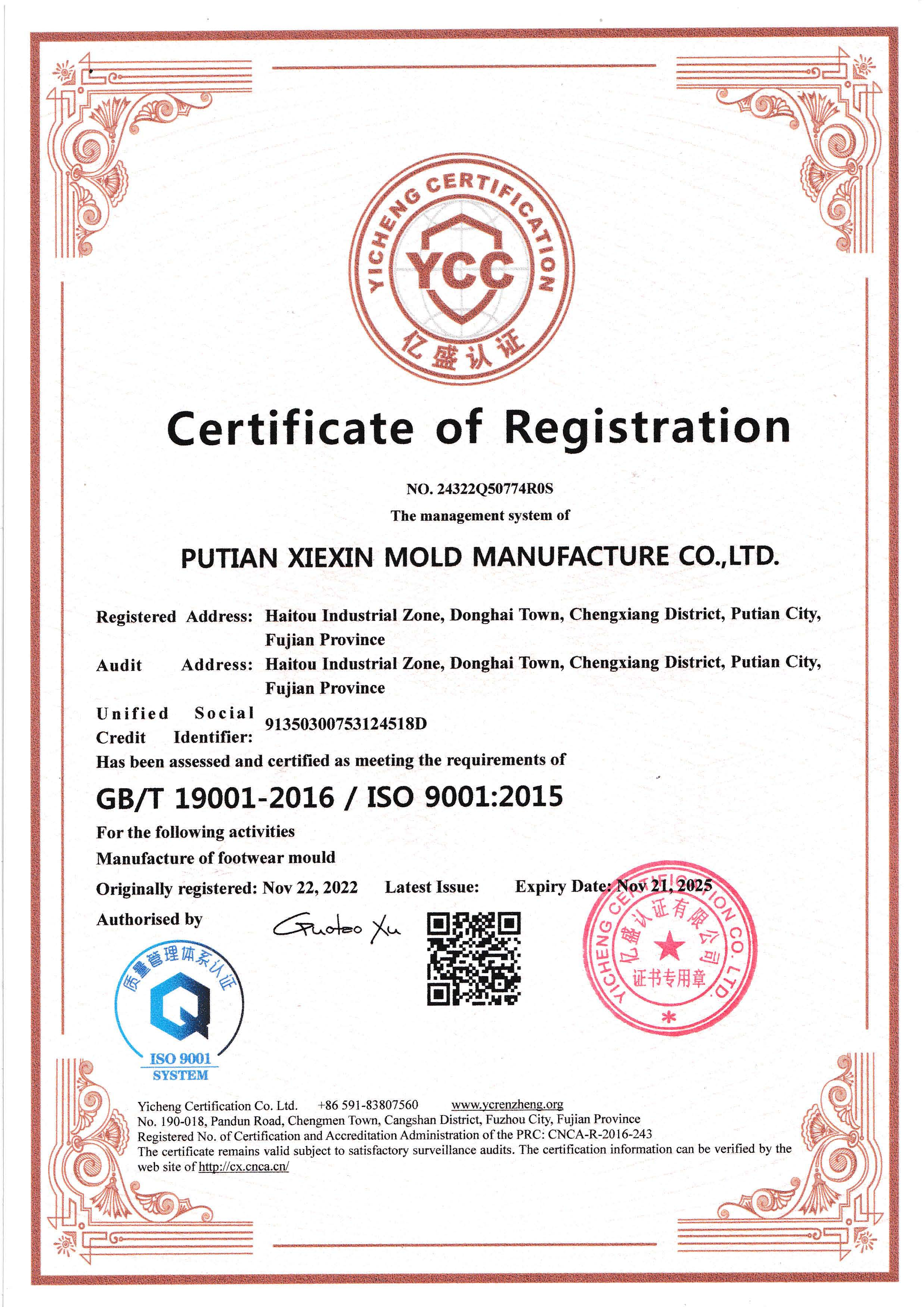 協(xié)信公司全景圖 Putian Xiexin mold making Co., Ltd. was established on September 10, 2003. It is invested and established by Hong Kong Xiexin International Trade Co., Ltd. with a registered capital of 1.2 million US dollars. It is a professional enterprise engaged in the design, manufacturing and sales of footwear mold, and enjoys a high reputation in the industry. Main products: Rb, EVA, PVC, TPU, TR, TPR, etpu, injection EVA, etc. The monthly production capacity of the company is more than 900 sets of molds, all products adopt international quality standards, and all production links implement and improve the quality inspection system.